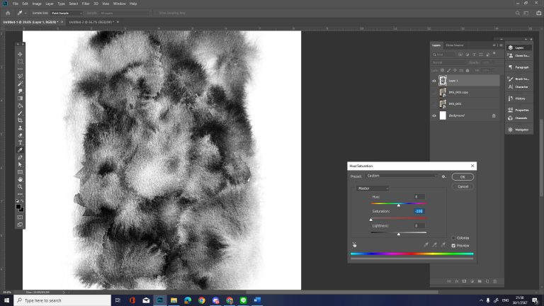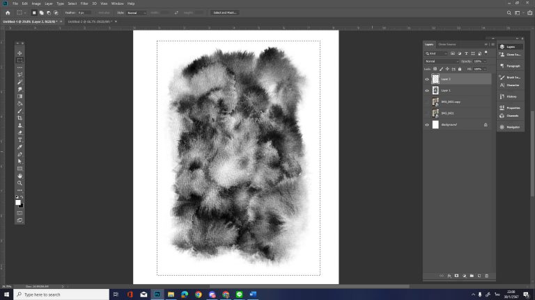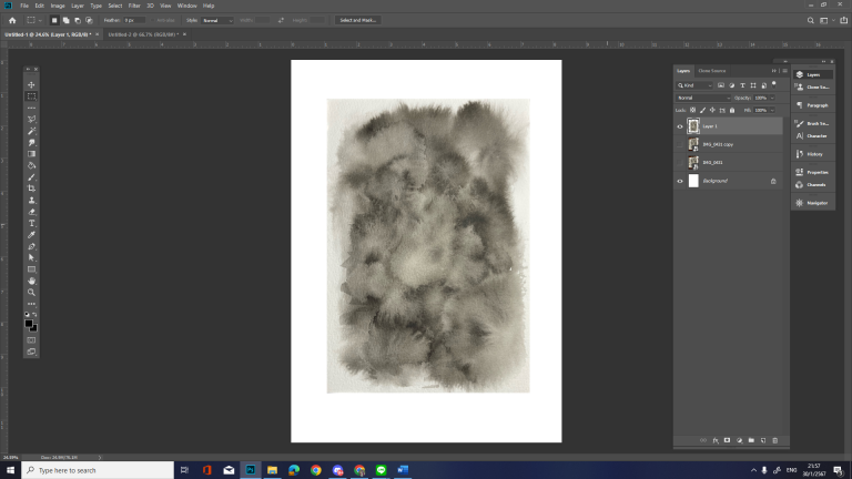 หลังจากได้ไฟล์ภาพที่ต้องการแล้ว ให้เรานำเข้าไปในโปรแกรม Photoshop (หรือโปรแกรมตกแต่งภาพประเภทอื่นที่ถนัด) โดยตั้งค่าหน้ากระดาษไปที่ A4 / 300 ppi เป็นอย่างน้อย เพื่อให้เทคเจอร์ที่ได้นั้นมีความละเอียดที่เพียงพอต่อการทำงานขนาดใหญ่