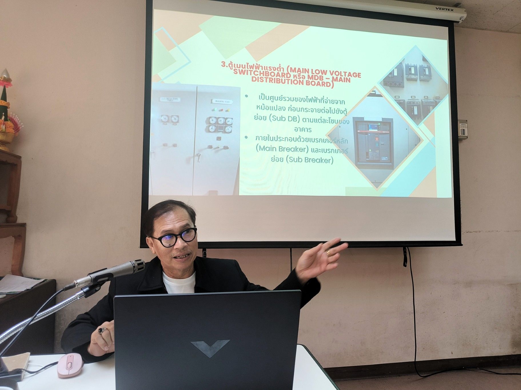 จัดขึ้นเพื่อเสริมสร้างความรู้และทักษะของบุคลากรเกี่ยวกับการบริหารจัดการระบบโครงสร้างพื้นฐานในอาคาร ซึ่งเป็นสิ่งจำเป็นอย่างยิ่งต่อการดำเนินงานด้านการผลิตและการถ่ายทอดสด เพิ่มความปลอดภัยและเสถียรภาพของมหาวิทยาลัยเนื้อหาครอบคลุมตั้งแต่ระบบไฟฟ้าหลัก (หม้อแปลงไฟฟ้า, ตู้ MDB, Sub DB, สายดิน) ระบบไฟฟ้าสำรอง (เครื่องกำเนิดไฟฟ้า GENSET, ATS, UPS) รวมถึงการดูแลระบบปรับอากาศแบบแยกส่วน (Split Type Air Conditioner) เพื่อควบคุมไฟฟ้าภายในสตูดิโอให้เหมาะสมเพียงพอเพิ่มความปลอดภัยกับการใช้งานจริง
