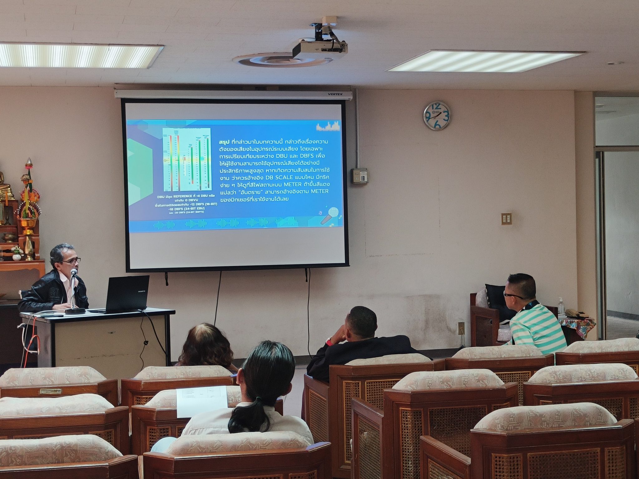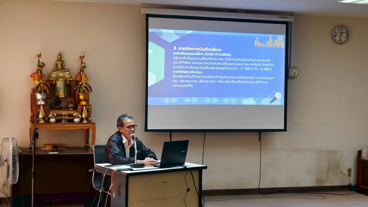 ได้จัดอบรมหัวข้อ “เทคนิคการใช้งานระบบเสียงแบบมืออาชีพ” เป็นส่วนหนึ่งของโครงการการจัดการความรู้เพื่อเพิ่มทักษะทางเทคนิคและประสิทธิภาพการทำงาน หัวข้อที่ 8 ณ อาคารผลิตรายการวิทยุและโทรทัศน์ (EBPC)