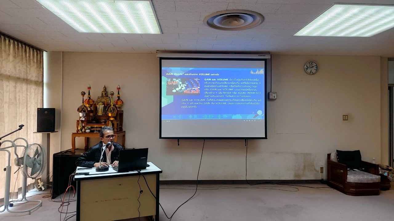 ถ่ายทอดความรู้ตั้งแต่การเลือกใช้ไมโครโฟนที่เหมาะสม (Dynamic, Condenser, Shotgun) การทำความเข้าใจรูปแบบการรับเสียง (Polar Pattern) ไปจนถึงการปรับ Gain และ Volume ให้สมดุล ผู้เข้าอบรมได้ทดลองติดตั้งไมโครโฟน ปรับแต่งเสียง แก้ปัญหาเสียงรบกวน และฝึกมิกซ์เสียงในสถานการณ์จริง เพื่อให้เข้าใจการทำงานของระบบเสียงครบวงจร
