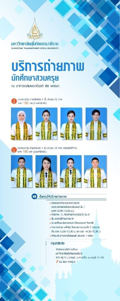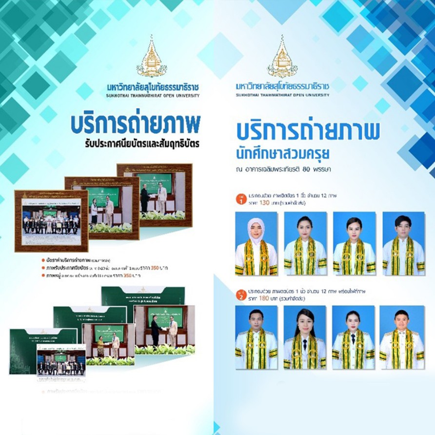 ให้บริการถ่ายภาพกิจกรรมที่มีรายได้ของมหาวิทยาลัย เช่น ให้บริการถ่ายภาพรับประกาศนียบัตรและสัมฤทธิบัตรของมหาวิทยาลัย ถ่ายภาพภาพหมู่ และถ่ายภาพติดบัตรบุคลากร นักศึกษาสวมครุย มสธ. และบุคคลทั่วไป