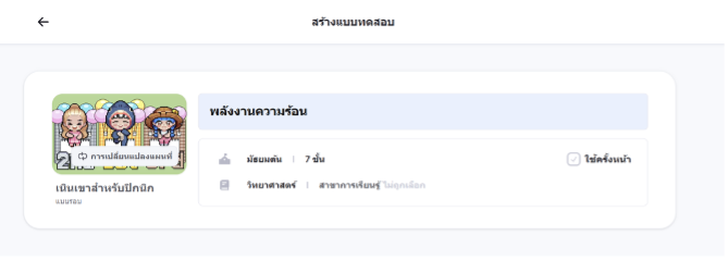 5. ใส่ข้อมูลของชุดแบบทดสอบ กำหนดระดับชั้น และวิชาที่สอน